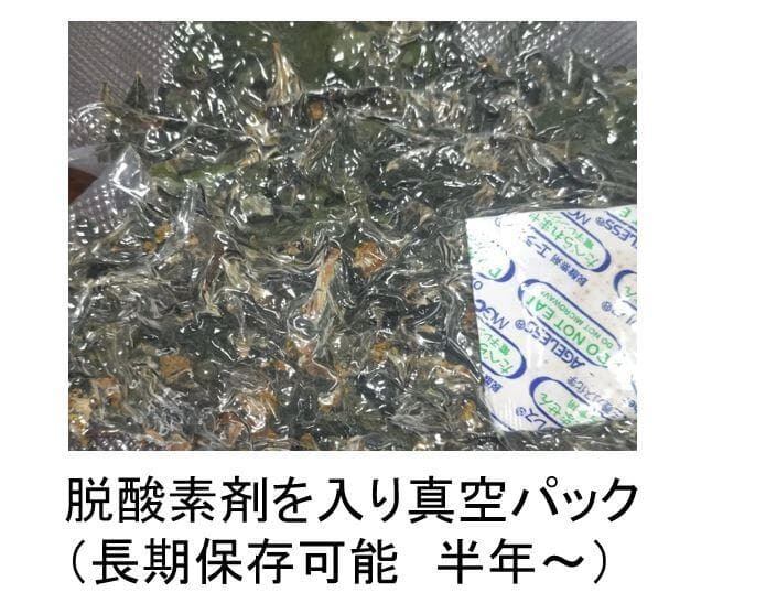 乾燥後真空パックし、 なるべく空気を抜いた後、脱酸素剤で 酸素濃度を低く保つ工夫 が長期保存のポイント!